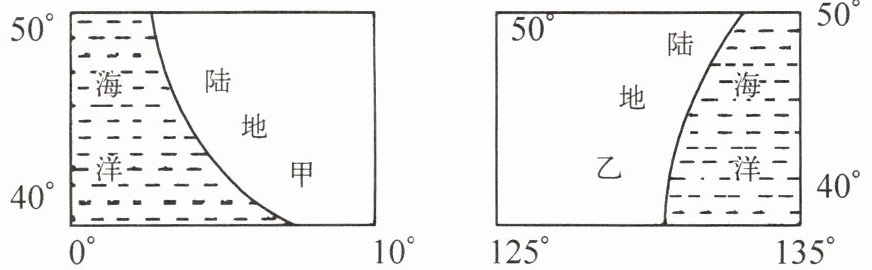 7. 下图中所示的甲、乙两地的气候类型分别是(