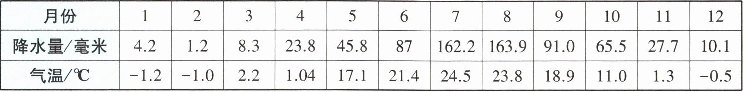 ℃。(2) 降水季节分配不均,夏季降水多,冬季降水少,属于