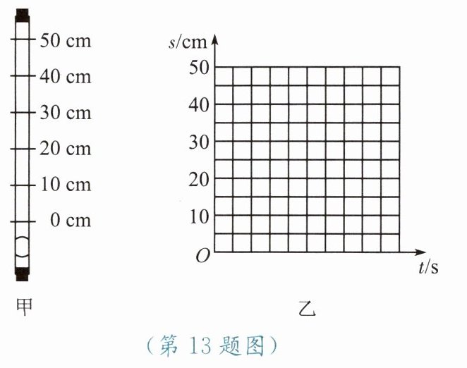 (1)如图甲所示,测得气泡从玻璃管底端运动到顶端的路程为 56 cm,所用的时间为 7 s。在这个过程中,气泡的平均速度为______m/s。