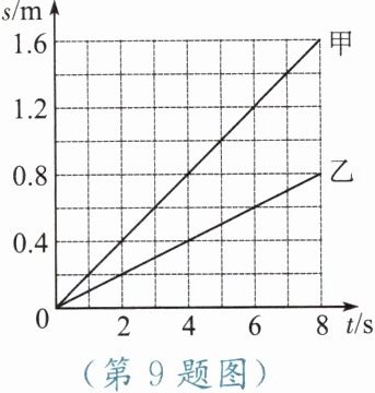 9. 甲、乙两物体从同一地点同时向东做匀速直线运动,它们的 s - t 图像如图所示。由图像可知(