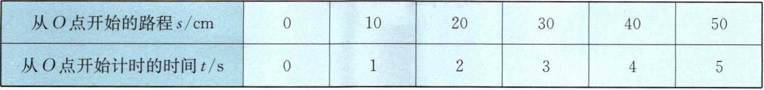 |从 O 点开始的路程 s/cm|0|10|20|30|40|50|