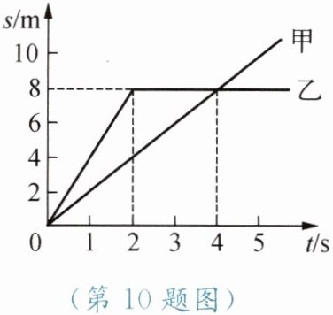 10. 甲、乙两物体,同时从同一地点沿直线向同一方向运动,它们的 $ s - t $ 图像如图所示。下列说法中正确的是(