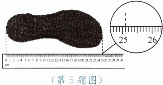 5. 在学校“运用物理知识破案”趣味游戏活动中,小明根据“通常情况下,人的身高大约是脚长的 7 倍”这一常识,可知留下右图中脚印的“犯罪嫌疑人”身高约为(