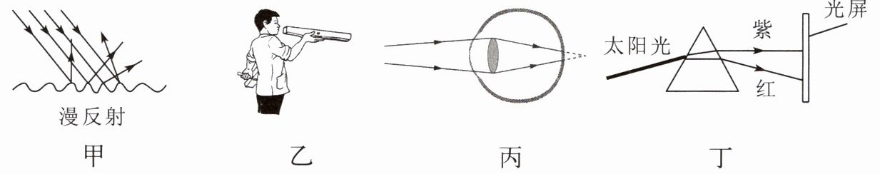 A.图甲中,漫反射的光杂乱无章,因此不遵循光的反射定律