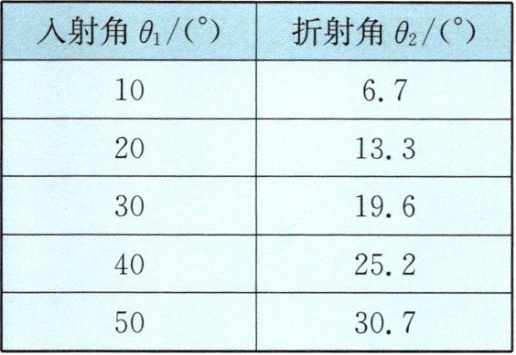 。| 入射角$\theta_1$/$^{\circ}$ | 折射角$\theta_2$/$^{\circ}$ |