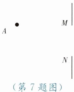 7. 如图所示,A 点是某同学眼睛所在的位置,M、N 是一扇窗户的两个边沿的位置,请尝试用作图的方法画出眼睛的视野范围。