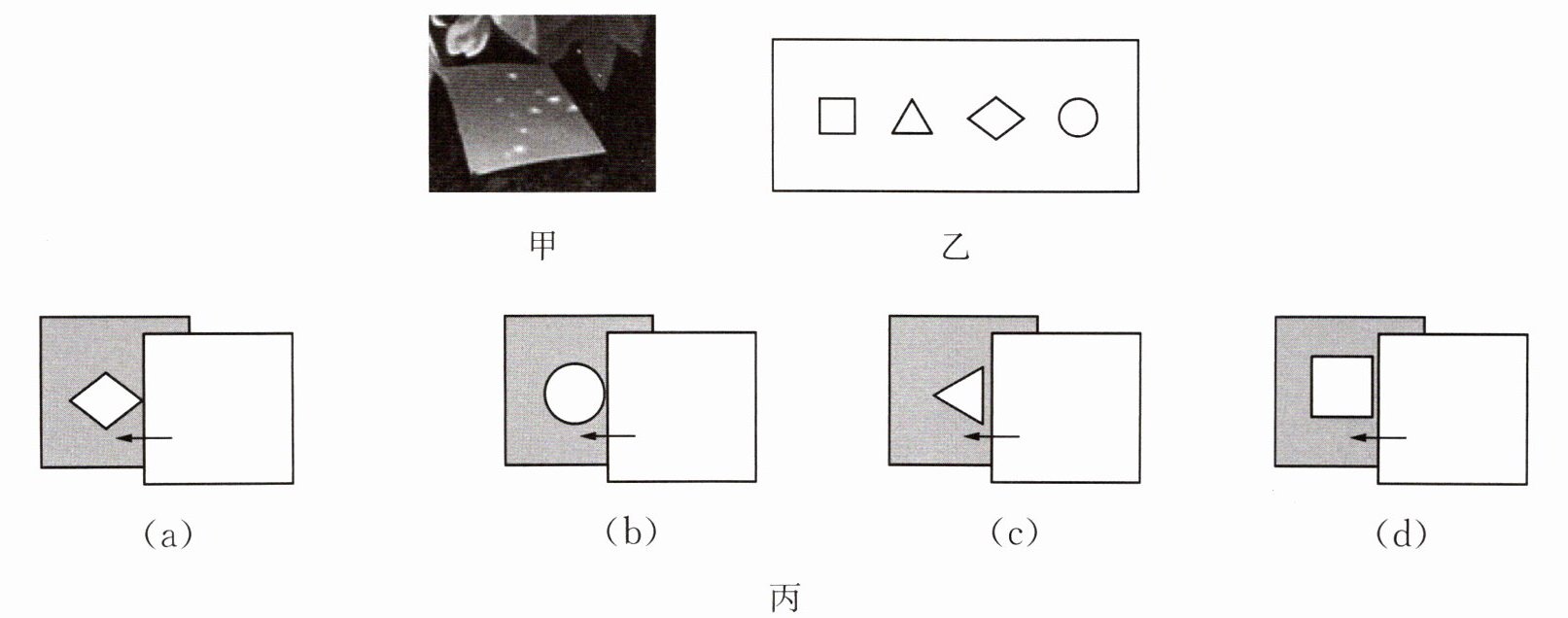 (3) 如图丙所示,当卡片距离白纸很近时,保持带孔的卡片到白纸的距离不变,用另一张白色卡片覆盖在带孔卡片上,并向左移动,使孔径越来越小。当孔径小到一定程度时,发现白纸上的光斑由原来孔的形状变成圆形。这说明小孔形成的光斑与小孔的大小______(选填“有关”或“无关”)。上述实验按图______所示的方案进行最为科学。