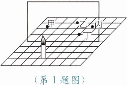 1. 如图所示,蜡烛在平面镜中所成像的位置应该是图中的(