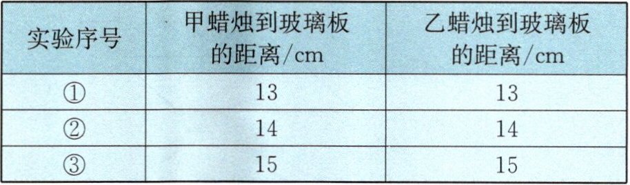 |实验序号|甲蜡烛到玻璃板的距离/cm|乙蜡烛到玻璃板的距离/cm|