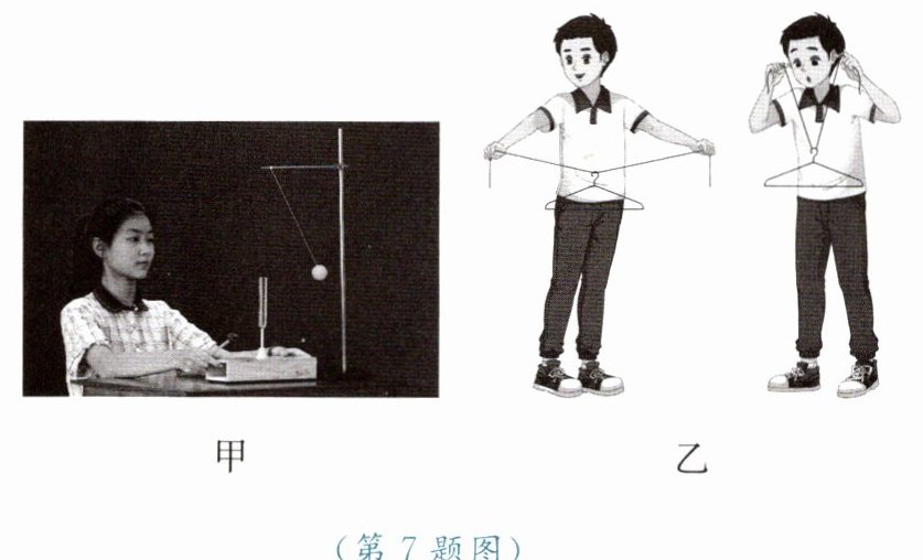 。(2)如图乙所示,一名同学将衣架悬挂在细绳中间,细绳的两端分别绕在两只手的食指上,进行如下实验:
