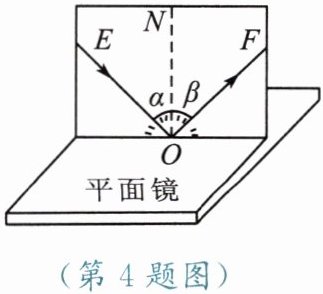 (2)如果让光线逆着 $OF$ 的方向射向镜面,会发现反射光线沿着 $OE$ 方向射出,这表明
