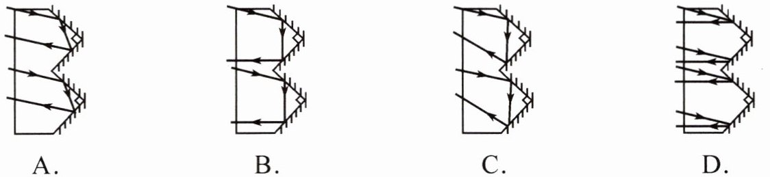 2. 夜晚,当汽车发出的光照射到自行车尾灯上时,司机看到尾灯的反射光,就能及时避让。下列有关自行车尾灯的光路图正确的是(