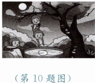 10. 如图所示,猴子看见月亮在井中,就要去捞,结果什么也没捞到。关于水中月亮离水面的远近,下列说法中正确的是(