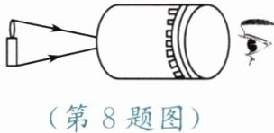 8. 小明用易拉罐做成如图所示的装置做小孔成像实验,易拉罐底部有一个很小的三角形小孔,他在半透明纸上看到的像是(