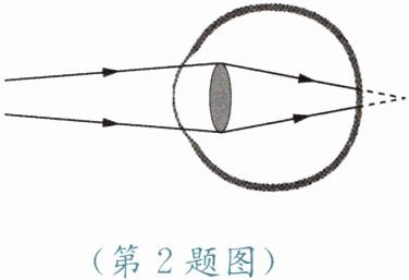 2. 如图所示是眼球的成像示意图,该眼球视力缺陷的类型及矫正视力需要配戴的透镜分别是(