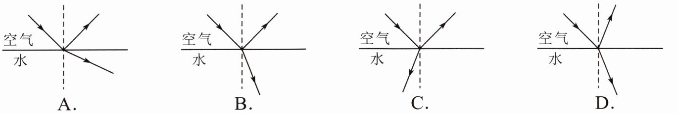 2. 下列光路图中,能正确表示光从空气射入水中时发生的反射和折射现象的是(