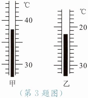 3. 如图所示是用温度计分别测得的物体甲和乙的温度:甲的温度是