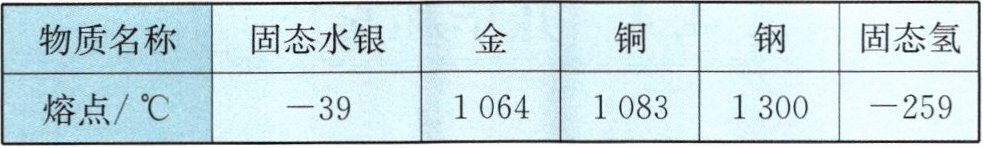 |物质名称|固态水银|金|铜|钢|固态氢|