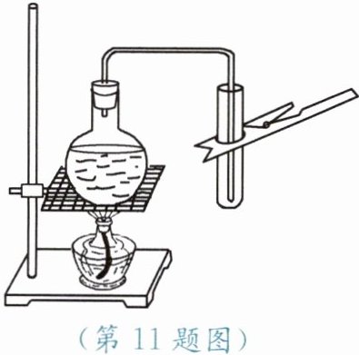 11. 如图所示,将烧瓶内水沸腾时所产生的水蒸气通入试管中,过一段时间,观察到试管中产生的现象是