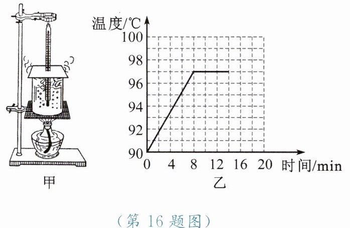 16. 在“探究水在沸腾前后温度变化的特点”实验中,小华使用的实验装置如图甲所示,根据实验数据作出的温度—时间图像如图乙所示。