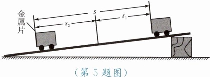 5. 如图所示是测量小车平均速度的实验装置。实验时,让小车从静止开始沿斜面向下运动。关于小车通过前半段路程 $ s_1 $、后半段路程 $ s_2 $ 和全程 $ s $ 的平均速度,下列说法中正确的是(