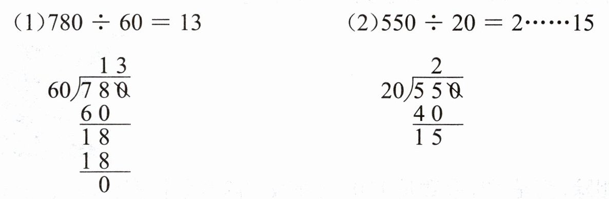 (2) 已知 $ 76 ÷ 14 = 5 … … 6 $,那么 $ 760 ÷ 140 = 5 … … $ (