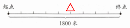 (2)如果用整条线段表示 $1800$ 米,小强现在到达了哪个位置?请在相应的位置画上 $\triangle$。(3 分)