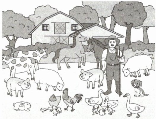 1. has;big farm 2. How many cows 3. many kinds of 4. Look at;is cute 5. This is