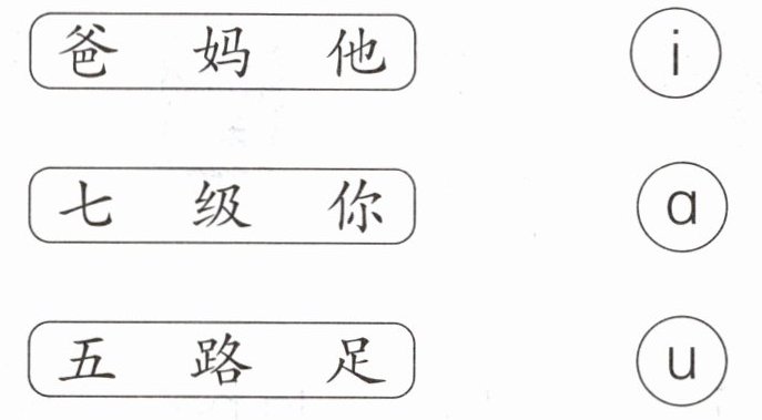 本题要求将汉字与对应的单韵母相连。