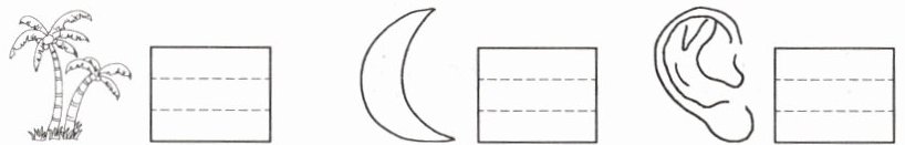 第一幅图是椰子树,“椰”的韵母是ie;第二幅图是月亮,“月”的韵母是üe;第三幅图是耳朵,“耳”的韵母是er。