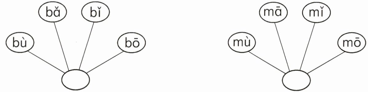 1. 对于第一组音节“bǎ、bǐ、bù、bō”,声母都是“b”;对于第二组音节“mā、mǐ、mù、mō”,声母都是“m”。