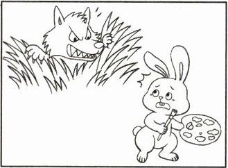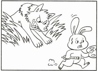 答案:一天,小白兔在森林里画画,突然,一只大灰狼从草丛里钻了出来,张牙舞爪地想要吃掉小白兔。小白兔吓得撒腿就跑,大灰狼在后面紧追不舍。