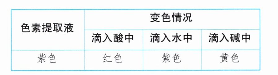 【动手操作】取该品种菊花的新鲜花瓣放入研钵中捣烂,移入容器中,加入乙醇,搅拌后浸泡约10 min,再加入等体积蒸馏水混合并过滤,得到的色素提取液即为自制酸碱指示剂。