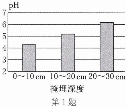 (4) 农业上常用白云石粉改良土壤酸碱性。为研究白云石粉掩埋深度对土壤酸碱性的影响,该小组在同一块土地的三个不同区域开展实验。50 天后,测得等量白云石粉掩埋深度与土壤 pH 的关系如图所示。根据图中信息,你认为茶农将白云石粉掩埋的最适宜深度是