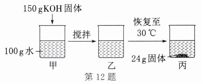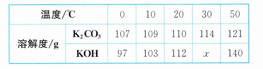 12. 碳酸钾和氢氧化钾在不同温度下的溶解度数据如表。
