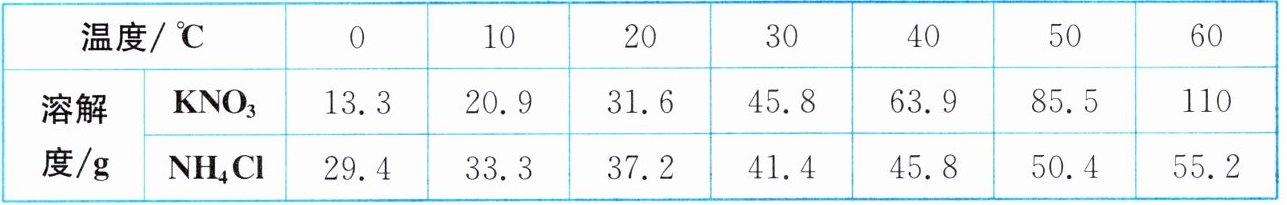 7. 如表是$KNO_3$和$NH_4Cl$分别在不同温度时的溶解度。