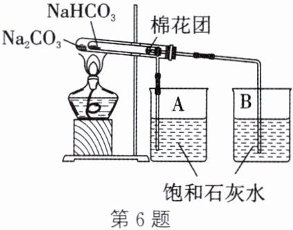 6. 某校化学兴趣小组的同学对苏打($ Na_2 CO_3$)和小苏打($ NaHCO_3$)在生活中有何作用、如何鉴别进行了如下的探究实验活动,请参与他们的探究过程,并回答下列问题: