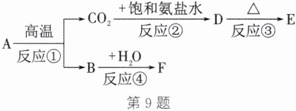 9. 石灰石、大理石都是重要的建筑材料,同时又是重要的化工原料。如图所示是工业上以石灰石为原料的化工生产过程中主要物质之间的转化关系(图中部分反应的部分生成物已略去)。