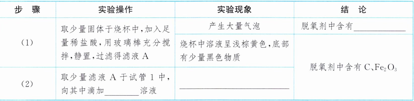 3. 小明从超市买来一袋干果,发现袋里有一个小纸包,上面标明“铁系食品脱氧剂,主要成分:铁粉、活性炭、氯化钠”。某化学小组的同学对这包脱氧剂产生了探究的兴趣。