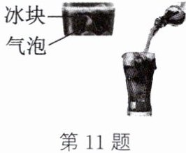 11. (2025·苏州模拟)如图所示,将某种碳酸饮料拧开,倒入装有冰块的杯子中。冰块