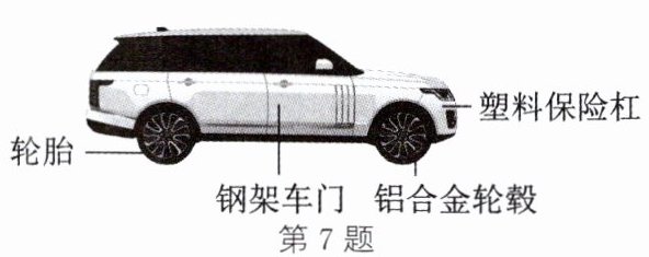 。答案:7.(1)钢架车门(或铝合金轮毂) (2)导电$ (3)8Al+3Fe₃O₄\stackrel{高温}{=\!=\!=}9Fe+4Al₂O₃$