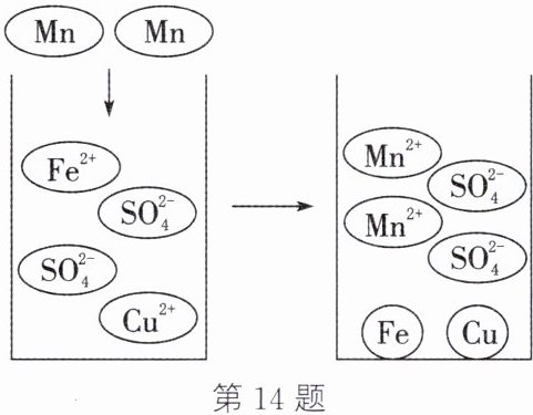 (1)将锰粉投入硫酸亚铁和硫酸铜的混合溶液中,反应前后的微观示意图如图所示。