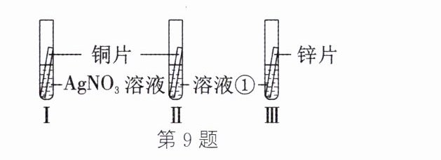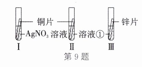 9. 小明利用如图所示的实验验证锌、铜、银的金属活动性顺序。