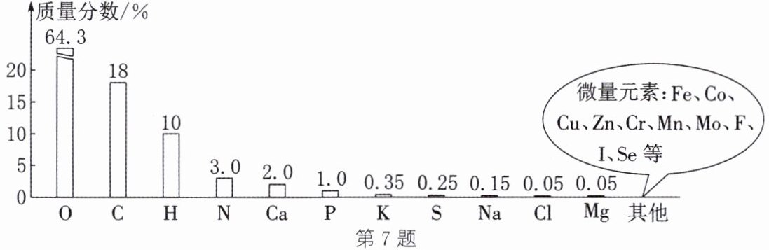 7. 人体中各元素的含量如图所示,个体会存在微小差异。请回答下列问题。