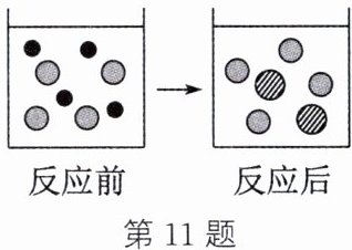 )答案:10. C 解析:向盛有一定量氧化铁的烧杯中不断滴入稀硫酸,稀硫酸与氧化铁反应生成硫酸铁和水。随着稀硫酸的加入,氧化铁的质量逐渐减小,当加入的稀硫酸达到一定质量时,氧化铁反应完全,固体质量减小为0,A图像错误;随着稀硫酸的加入,溶液的质量不断增大,氧化铁反应完全后,继续加入稀硫酸,溶液的质量还是逐渐增大的,反应时溶液质量增大较快,反应结束后溶液质量增大较慢,B图像错误;氧化铁与稀硫酸反应过程中有水生成,溶剂质量增大较快,完全反应后,随着稀硫酸的加入,溶剂的质量还是增大的,只是增大的幅度减小,故图像先陡后缓,C图像正确;氧化铁与稀硫酸反应生成硫酸铁和水,开始时溶液中铁元素的质量为零,随着稀硫酸的加入,溶液中铁元素的质量逐渐增大,氧化铁反应完全后,继续加入稀硫酸,溶液中铁元素的质量不再发生变化,D图像错误。