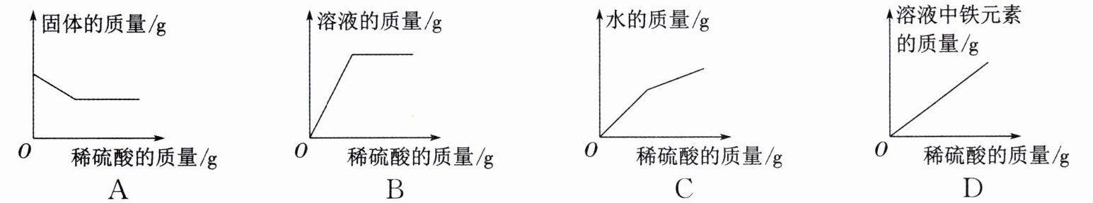 10. 向盛有一定量氧化铁的烧杯中不断滴入稀硫酸,下列烧杯中有关量的变化中正确的是 (