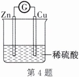 。答案:4. (1) $ Zn + H_2 SO_4 \longrightarrow ZnSO_4 + H_2 \uparrow$(2) 化学能转化为电能