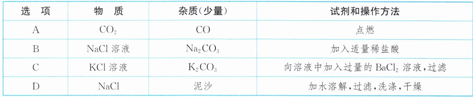 解:A. 二氧化碳中混有少量一氧化碳,无法通过点燃的方法除去,因为二氧化碳不支持燃烧,少量一氧化碳在二氧化碳中无法燃烧,A错误;