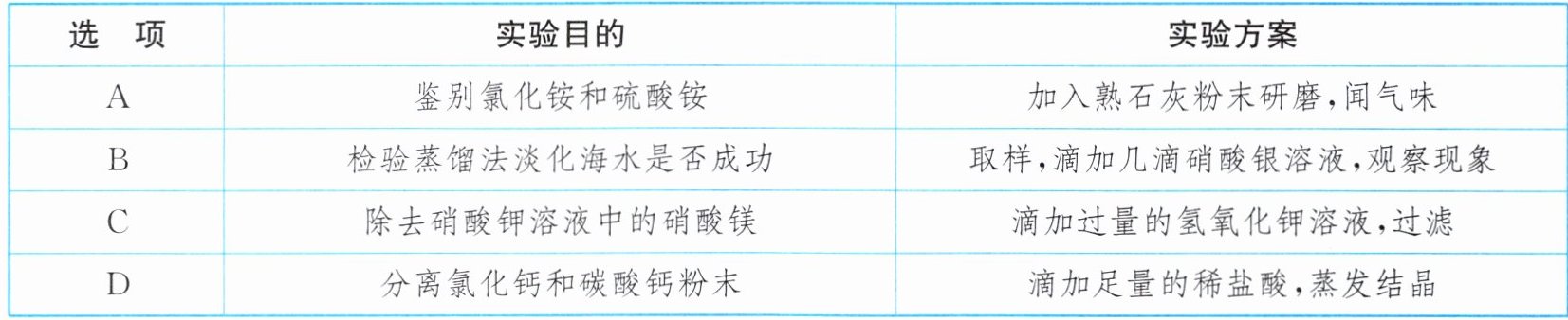 3. (2024·宿迁)物质的鉴别、检验、除杂和分离是重要的实验技能。下列实验方案设计正确的是 (