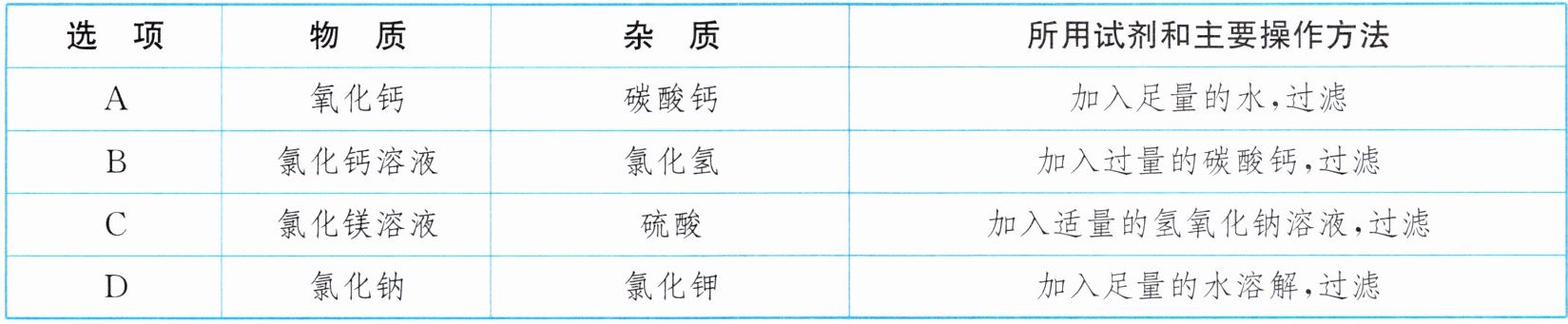解:A. 氧化钙与水反应生成氢氧化钙,会将原物质除去,不符合除杂原则,方法错误。